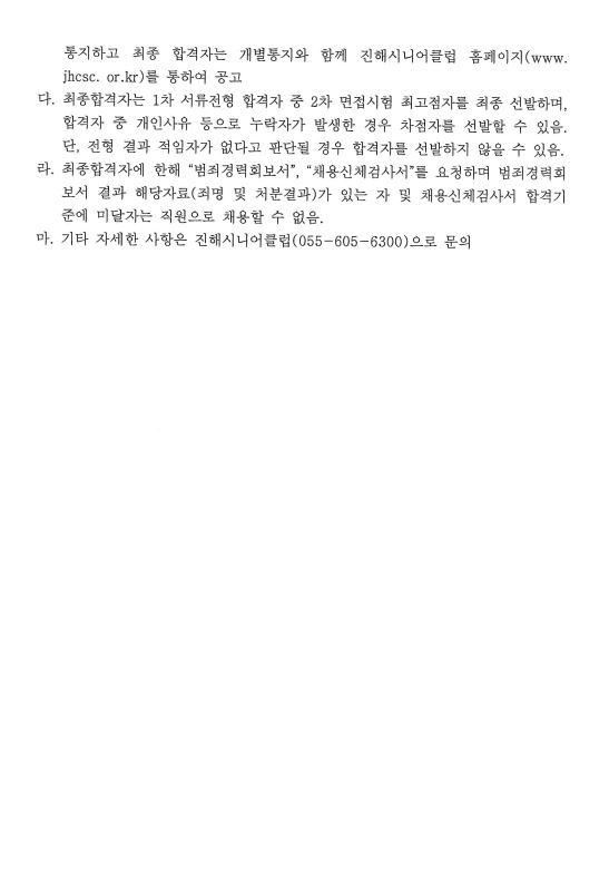 진해시니어클럽(노인일자리담당자/안전전담인력) 채용 서류합격자 발표