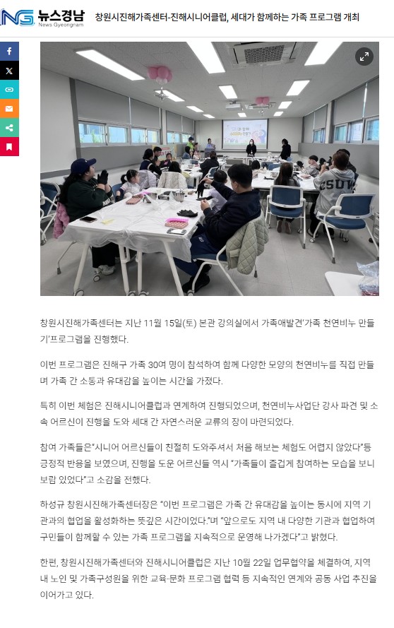 창원시진해가족센터-진해시니어클럽, 세대가 함께하는 가족 프로그램 개최